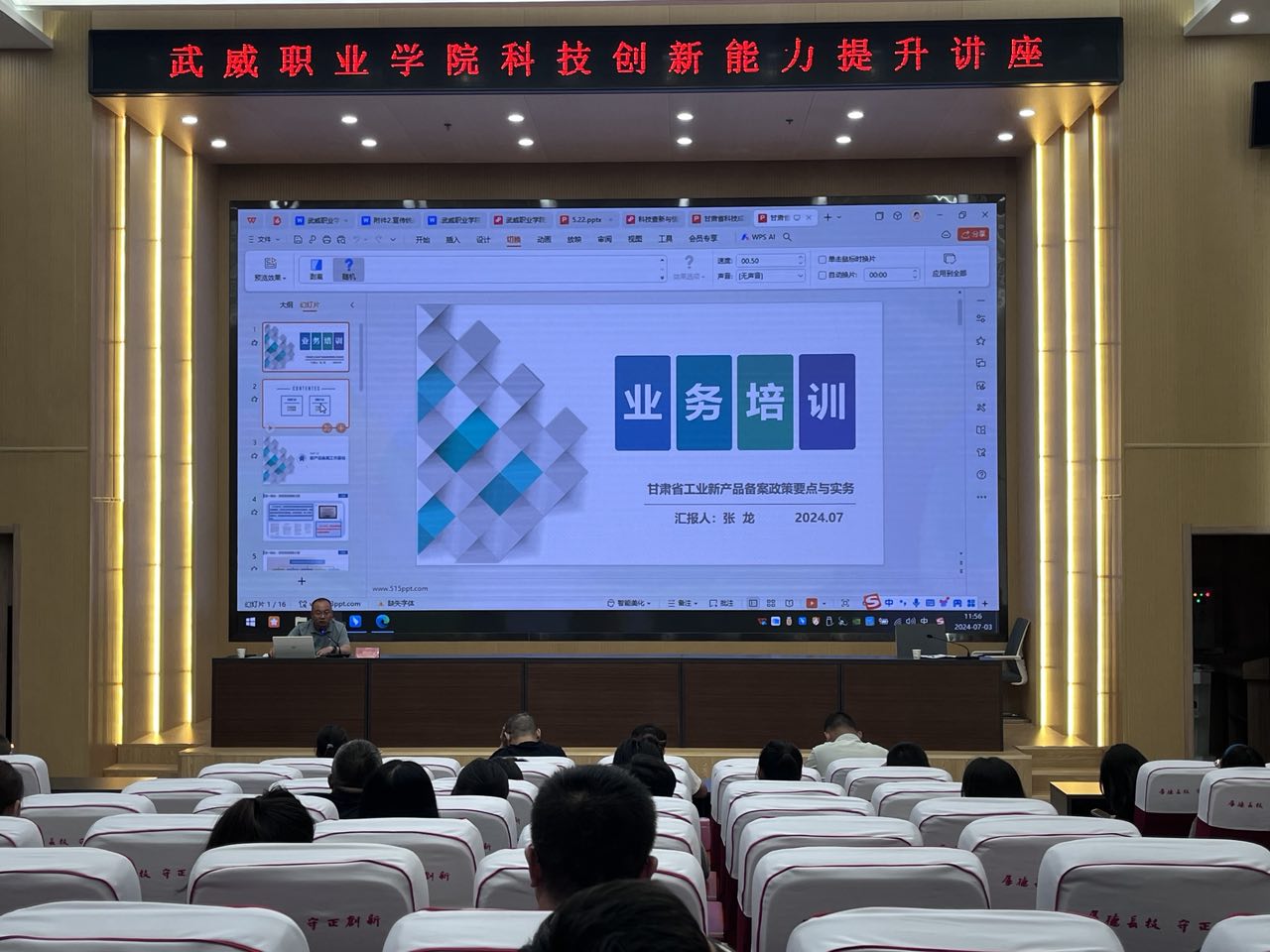為進(jìn)一步提升學(xué)校教師科研創(chuàng)新能力,掌握科技成果評價及新產(chǎn)品備案實施細(xì)則,7月3日上午,科技處邀請了甘肅省科學(xué)技術(shù)情報研究所專家蘇海龍和張龍研究員來我校開展科研專題講座。教師們積極踴躍參加講座,認(rèn)真聆聽,收獲頗豐。