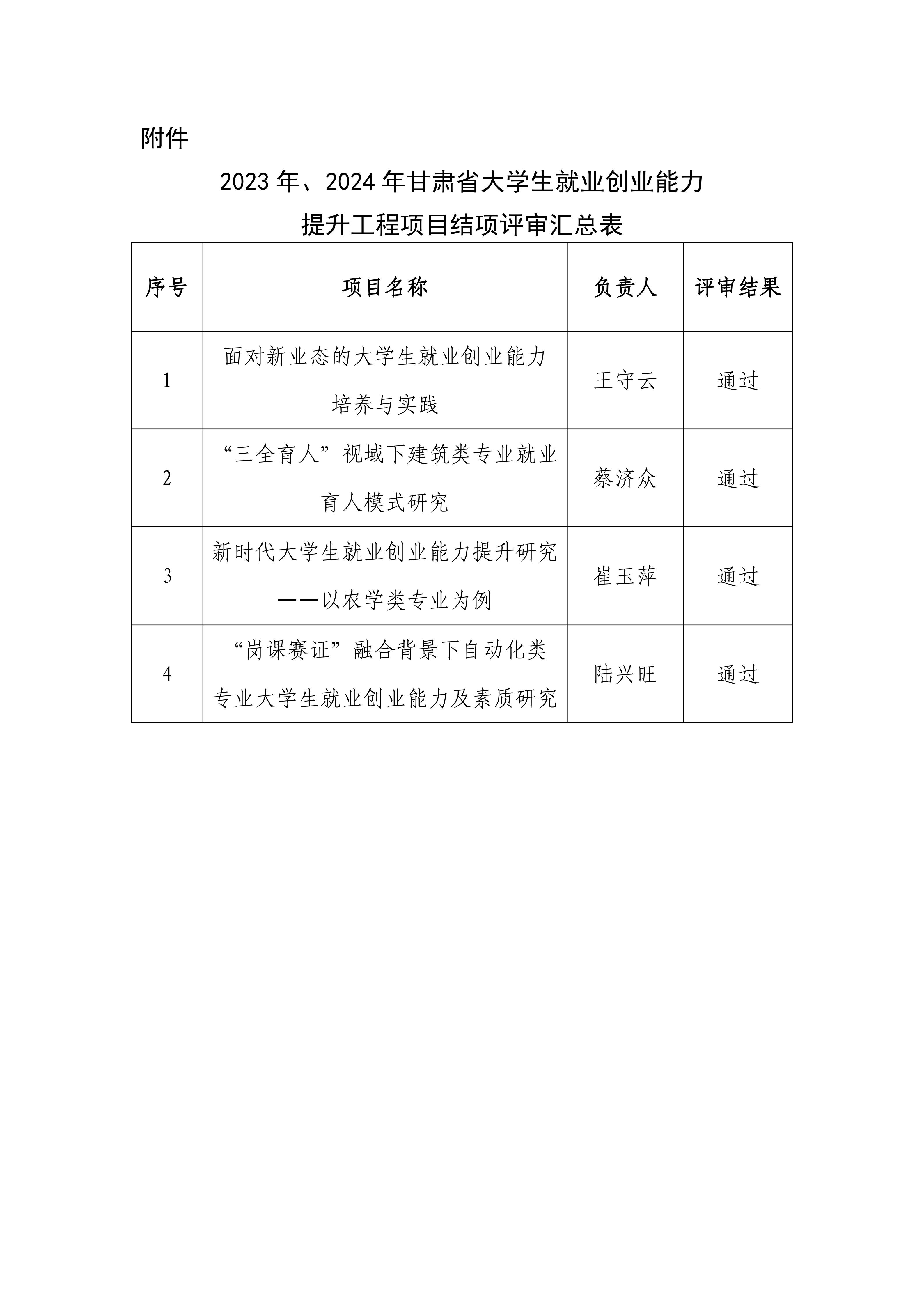 2023年、2024年甘肅省大學生就業(yè)創(chuàng)業(yè)能力提升工程項目結(jié)項評審結(jié)果公示