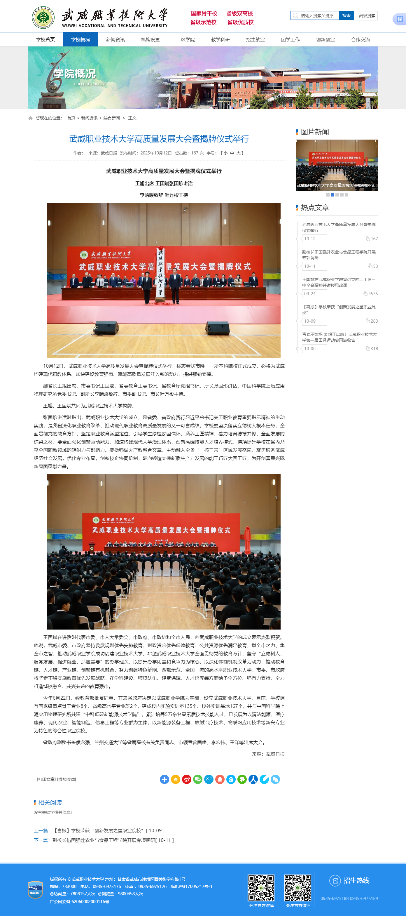 武威職業(yè)技術大學高質(zhì)量發(fā)展大會暨揭牌儀式舉行