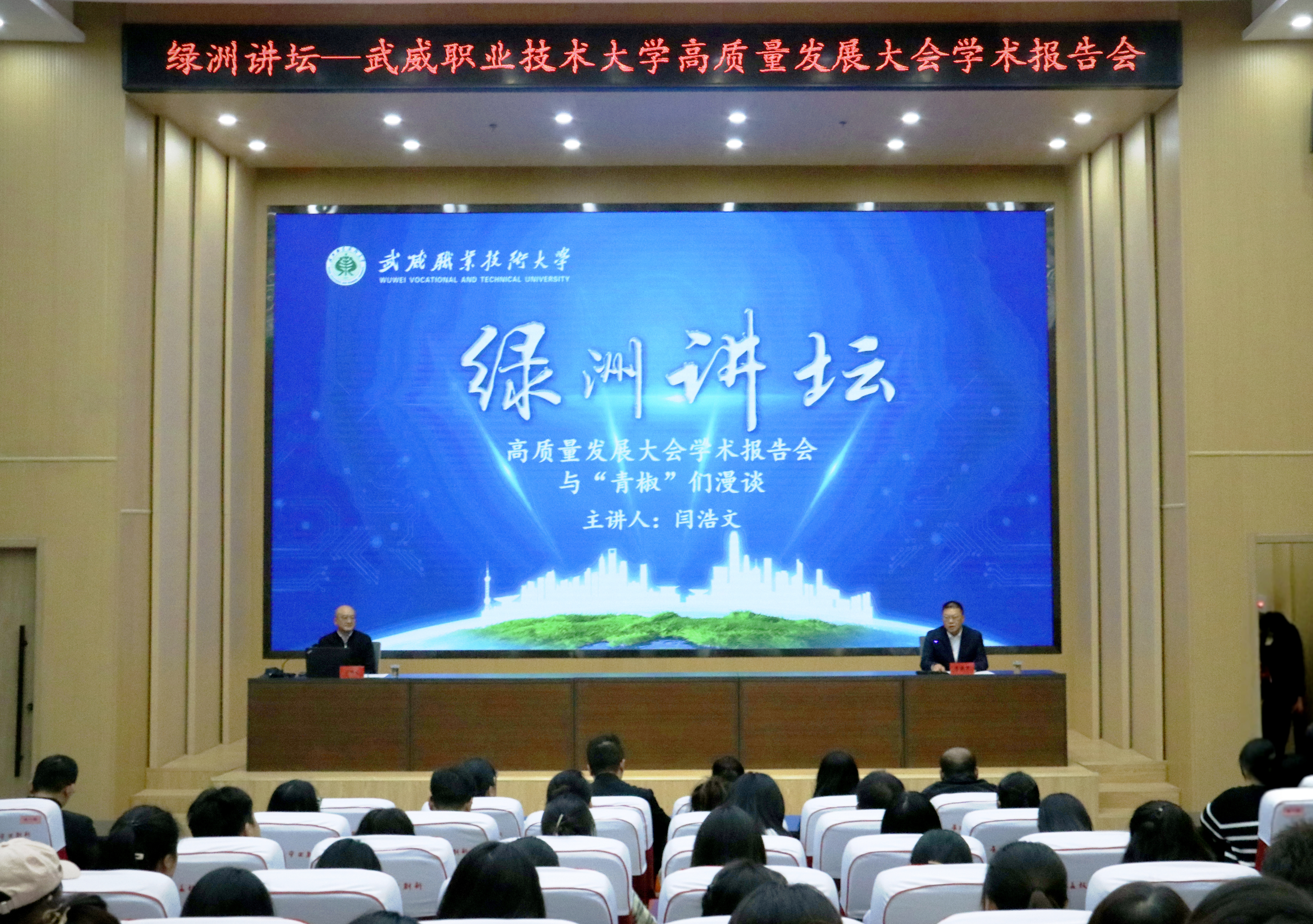 10月12日下午,蘭州交通大學(xué)黨委常委、副校長(zhǎng)閆浩文教授,受邀做客武威職業(yè)技術(shù)大學(xué)“綠洲講壇”,以《與“青椒”們漫談》為題,為該校青年教師帶來(lái)專(zhuān)題學(xué)術(shù)報(bào)告。