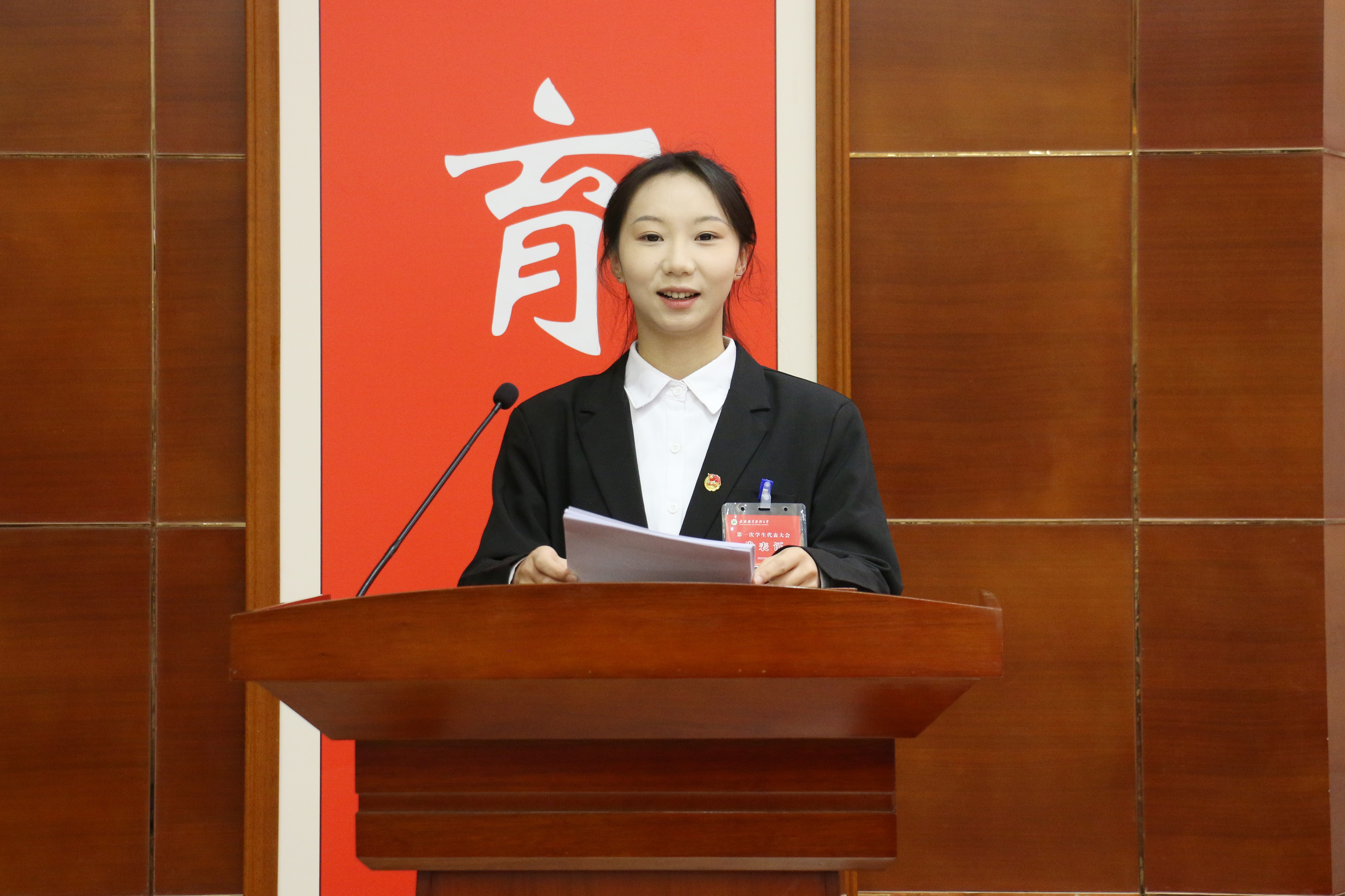 學(xué)校學(xué)生會(huì)主席團(tuán)成員李悅同學(xué)代表第十一屆學(xué)生會(huì)委員會(huì)向大會(huì)作題為《奮楫篤行啟新程 挺膺擔(dān)當(dāng)筑夢(mèng)行,團(tuán)結(jié)帶領(lǐng)廣大同學(xué)在建設(shè)特色鮮明的高水平職業(yè)技術(shù)大學(xué)中貢獻(xiàn)青春力量》的工作報(bào)告。