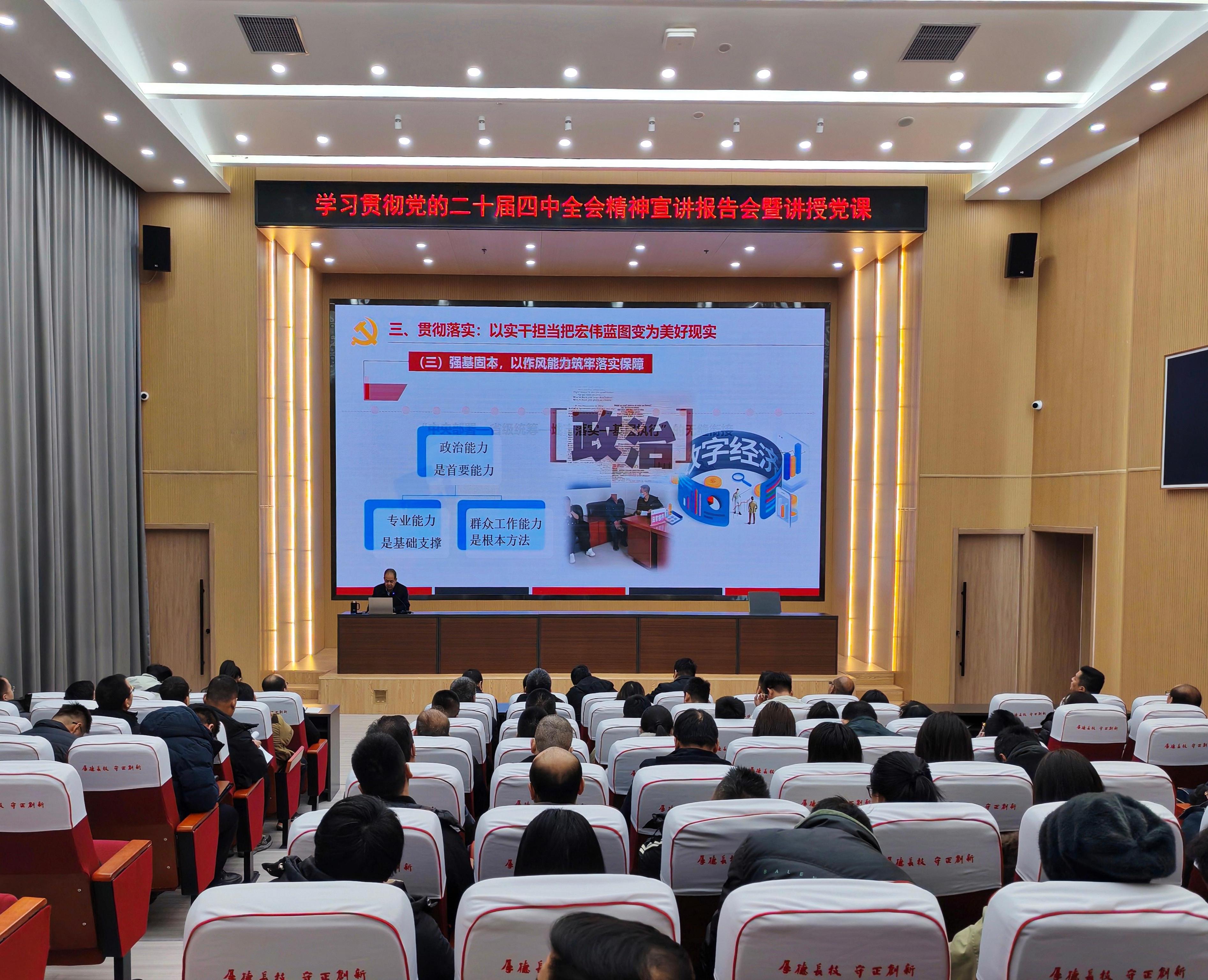 根據(jù)學校統(tǒng)一安排部署,中科低碳新能源技術(shù)學院精心組織、統(tǒng)籌推進,面向全體教職工、黨員、入黨積極分子及團學干部開展黨的二十屆四中全會精神系列學習宣講活動,推動全會精神入腦入心、落地生根。