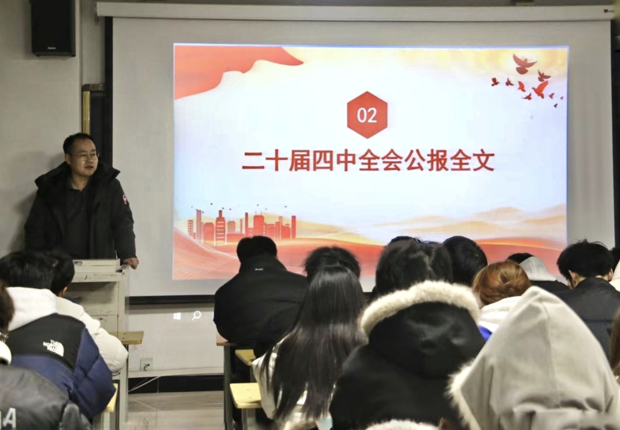 12月5日,學院黨總支書記黃述杰率先開展專題培訓,圍繞黨的二十屆四中全會召開的時代背景、重大意義和核心要義進行系統(tǒng)解讀,全體黨員及入黨積極分子參會學習。黃述杰強調(diào),要持續(xù)深化黨的創(chuàng)新理論武裝,將學習貫徹黨的二十屆四中全會精神與學習貫徹習近平新時代中國特色社會主義思想緊密結(jié)合,切實把學習成果轉(zhuǎn)化為推動工作的實際成效;要縱深推進“四個突出”戰(zhàn)略發(fā)展思路,緊扣鑄牢中華民族共同體意識主線,錨定“十個較強”發(fā)展目標,推動“鑄牢”工作全面融入專業(yè)建設、教書育人全過程各方面;要聚焦教育教學主責主業(yè),持續(xù)深化“大學風”建設與課程思政改革,著力在抓落實、抓基層、抓學風上實現(xiàn)新突破、取得新成效。