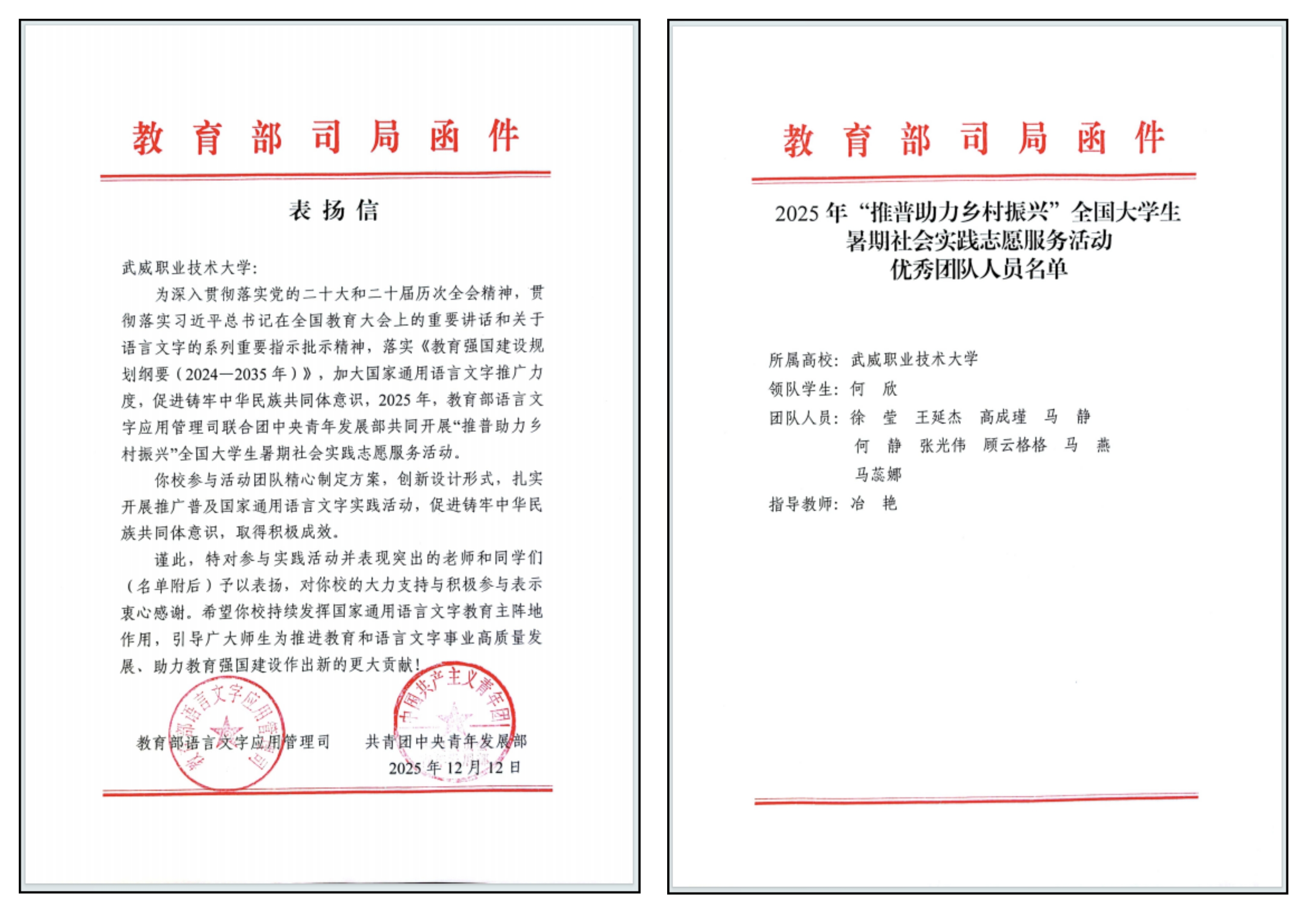 二、學(xué)校2025年“推普助力鄉(xiāng)村振興”全國大學(xué)生暑期社會(huì)實(shí)踐志愿服務(wù)活動(dòng)首次獲國家級(jí)優(yōu)秀團(tuán)隊(duì)表彰
