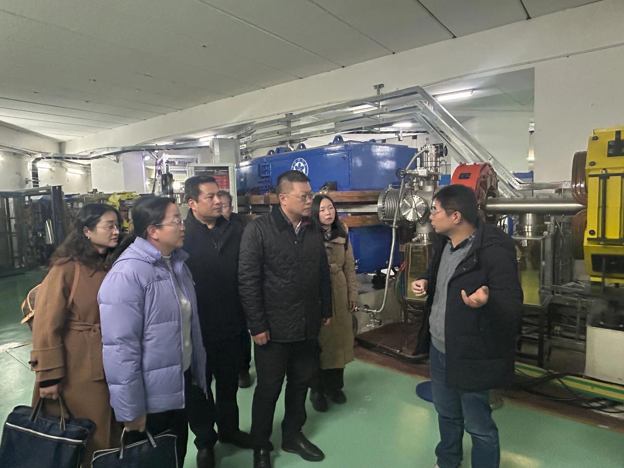 隨后,在醫(yī)用探測器室主任毛瑞士與副主任徐治國的陪同下,調研組實地參觀了“國之重器”——蘭州重離子加速器裝置,詳細了解了其結構組成、運行機制與核心技術原理。毛瑞士結合該裝置在重離子醫(yī)用探測器研發(fā)、醫(yī)用束測控制等領域的實際應用,闡釋了核探測技術對提升醫(yī)學診療精度的支撐作用,使調研組成員切身感受到大科學裝置的科技魅力與實用價值。