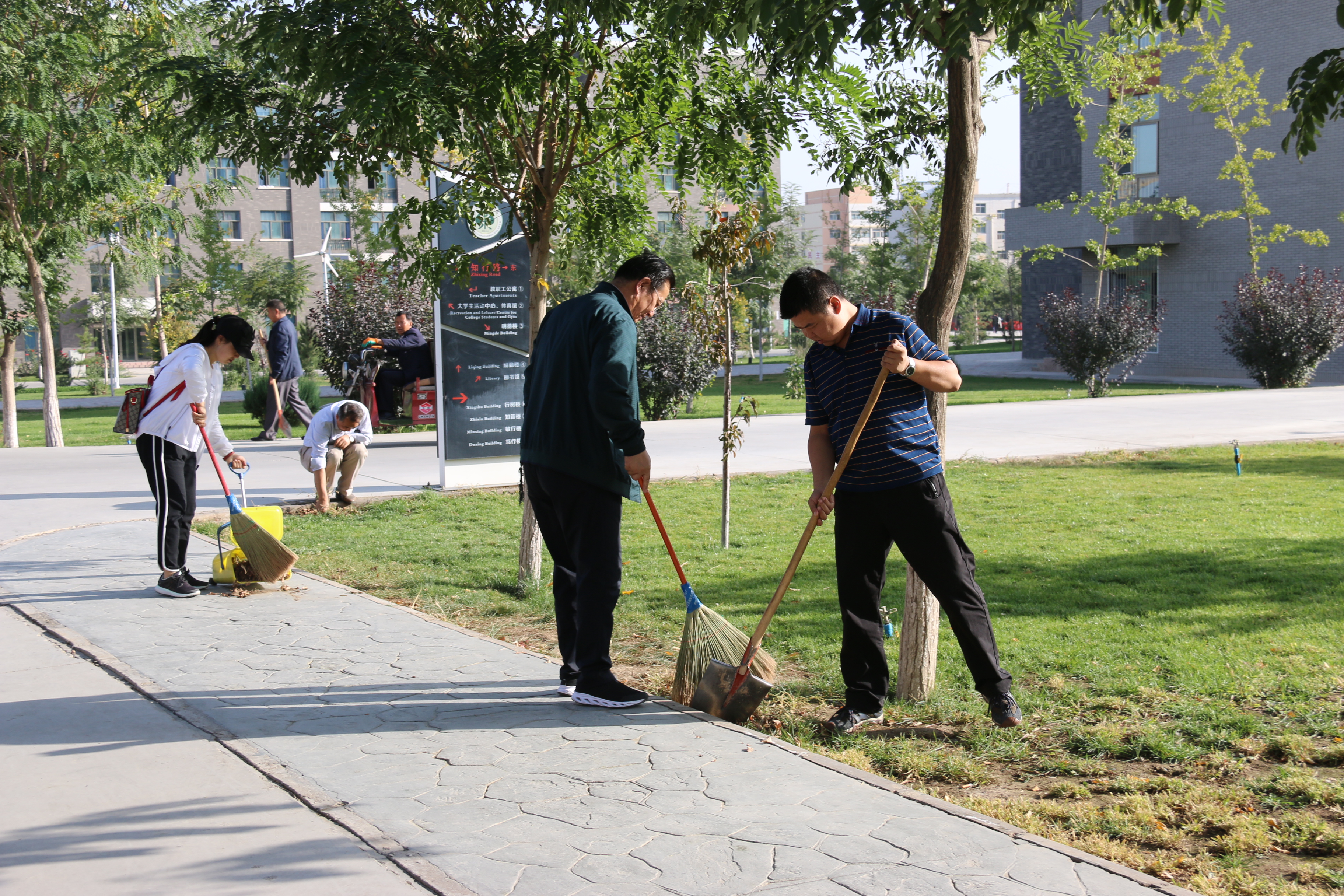 活動(dòng)現(xiàn)場(chǎng),大家紛紛拿起掃把、鐵鍬、簸箕、夾子等衛(wèi)生清潔工具,按照事先劃分的區(qū)域和責(zé)任分工對(duì)校園內(nèi)主要道路、樓宇四周、過(guò)道、樹溝、草坪、花圃等地的囤積垃圾、枯枝落葉、建筑垃圾等進(jìn)行了集中掃除,特別是對(duì)一些角落堆積的垃圾進(jìn)行徹底清理。